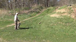 De volgende opname is al meerdere stappen verder: Wieks moet nu vlak langs de voerdummy om eerst bij mij te komen.