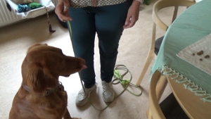 Om de hond duidelijk te maken dat dit in iedere omgeving geldt, begin je in de zitkamer, daarna in de gang en in de tuin.
